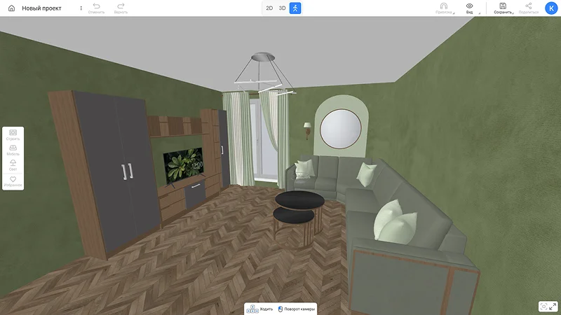 Совет: начните с плана квартиры. На общей схеме будет понятно, где расположить шкафы, чтобы ими было удобно пользоваться. Обратите внимание, сочетается ли оформление комнаты со стилем жилья. Лучше выбрать специальный сервис, где предусмотрена возможность работы со всеми помещениями.