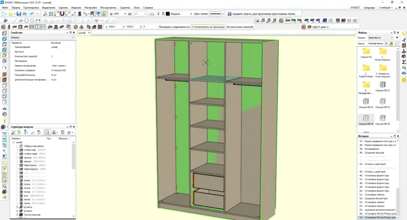 Астра была создана для крупных и малых предприятий, занимающихся изготовлением мебели. Программные инструменты ориентированы на создание предметов меблировки, чертежей и вывод файлов на станки с ЧПУ. Во встроенной библиотеке есть готовые изделия, которые ускоряют процесс работы, но собрать мебель можно и абсолютно с нуля. После сборки программа автоматически формирует пакет документов: схемы, отчеты, ведомости, а при изменении проекта данные также автоматически обновляются. Готовый дизайн можно посмотреть в любой 3D-проекции: сбоку, спереди, в перспективе. ПО можно скачать бесплатно, но ознакомительная версия имеет серьезные ограничения.